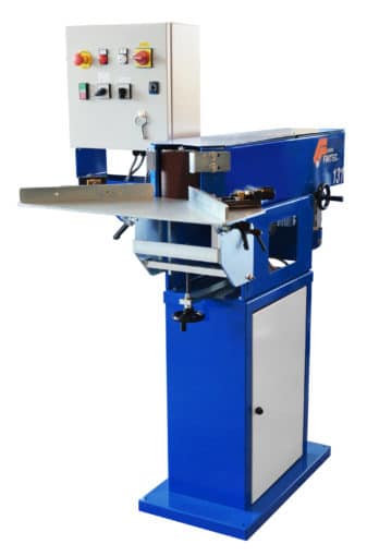 Maszyna szlifująca z pasem do obróbki wzdłuż promienia lub czyszczenia spawanych narożników pracująca z 2 prędkościami, łącznie ze stojakiem z szafką, ssawka i układem elektrycznym umieszczona w wodoszczelnej kasecie metalowej. Maszyna do szlifowania spawanych narożników na krawędziach detali takich o prostokątnym przekroju takich jak kasety ze spawanym narożnikiem na maksymalnej wysokości 150 mm oraz do wykonywania promienia na płaskich obrabianych przedmiotach.