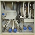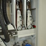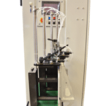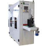Maszyna zaprojektowana do polerowania ostrzy nożycowych z dwiema głowicami umieszczonymi w górnej części i dwiema głowicami umieszczonymi w dolnej części z odwrotnym kierunkiem obrotów czyszcząca pas ścierny. Automatyczna jednostka do rozładunku dostarcza ładunek na przenośnik taśmowy w kierunku głowic roboczych.